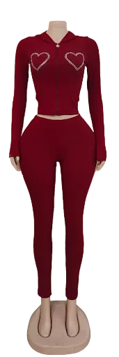 The Ms. Pretty Set is designed to hug every curve while keeping you comfortable and confident. This two-piece set features a fitted cropped zip-up hoodie with rhinestone heart detailing and high-waisted leggings that sculpt, smooth, and move with you. Whether you’re stepping out or staying cozy, this set makes a statement without saying a word.