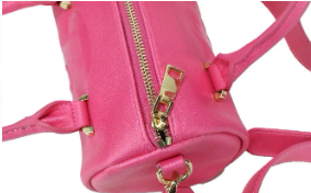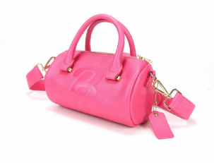 Pink cylinder bag with gold zipper and long body strap made with the best vegan